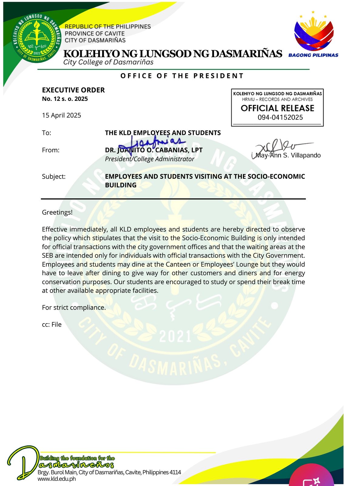Executive Order No.015 s. 2025The KLD CommunityDownload Link