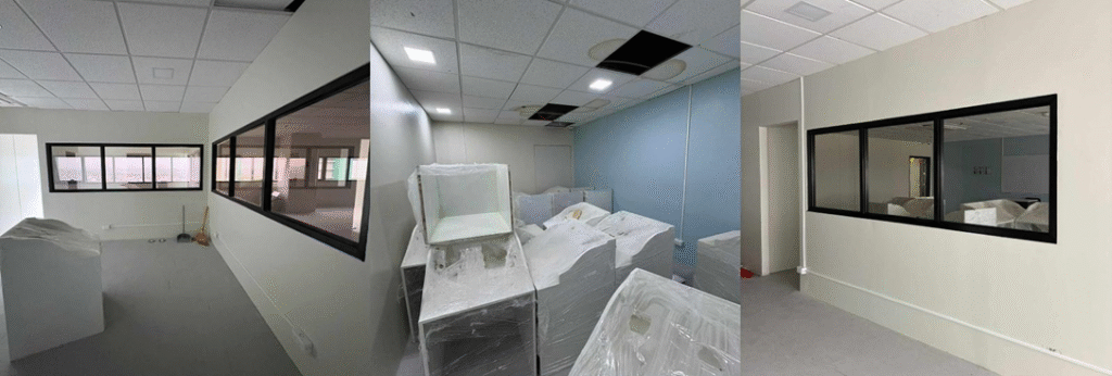 Significant advancements have also been recorded in the specialized academic facilities. The Psychology Laboratory stands at 90% completion, with its wall partitions, paintworks, and all electrical works successfully finalized. This modern space features one-way mirrors, which have been installed to support advanced observational studies. Only the final doors are pending installation.